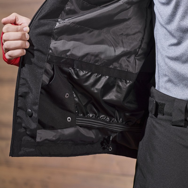دو جیب جانبی زیپدار ، جیب داخلی مخصوص کیف پول و جیب زیپدار روی آستبن مخصوص کارت