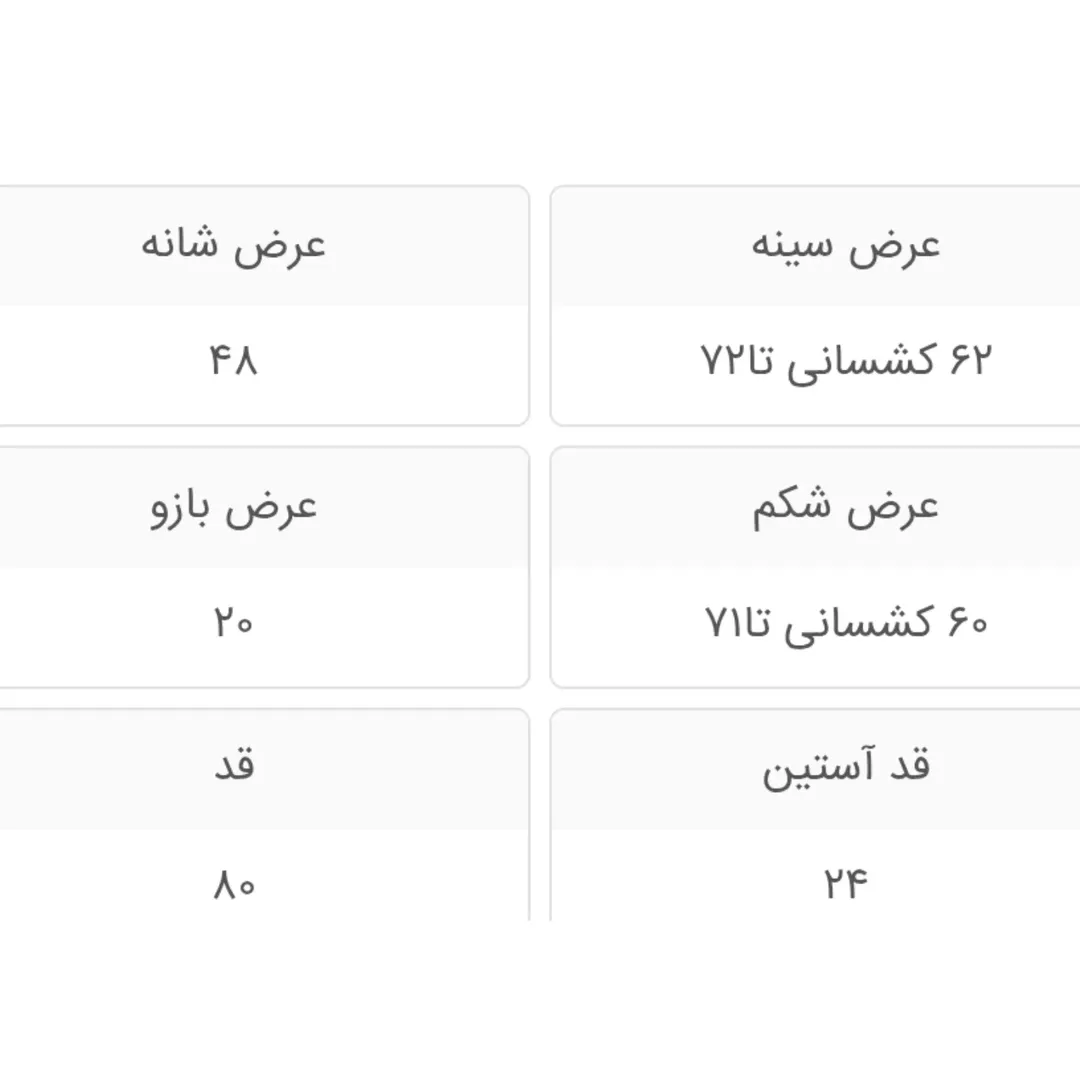 راهنمای سایز در دو اسلاید آخر