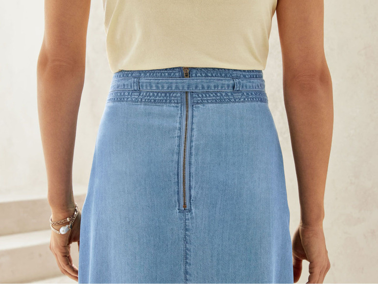پارچهی این دامن از لیوسل (Tencel) ساخته شده که یکی از الیاف دوستدار محیطزیست است. این پارچه علاوه بر لطافت بالا، خاصیت تنفسپذیری دارد و مانع از ایجاد حساسیت پوستی میشود. همچنین لیوسل چروکپذیری کمی دارد و شکل خود را در طولانیمدت حفظ میکند