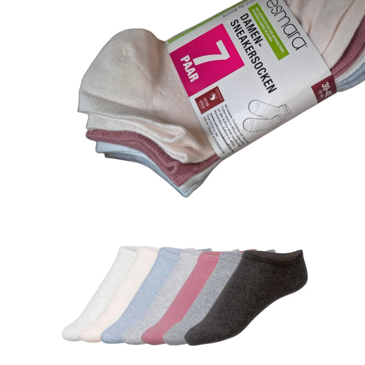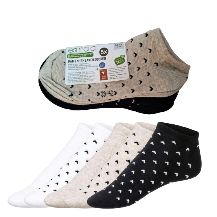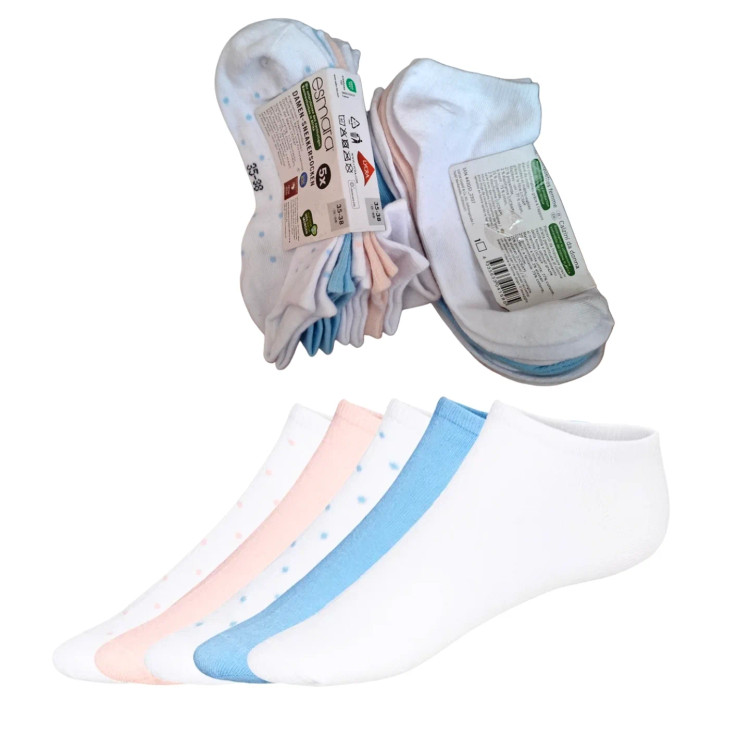 جوراب مچی زنانه اسمارا پک چند تایی در پک اصلی آلمانی ESMARA دارای نوار سیلیکون ژله ای در قسمت داخلی پاشنه دارای حالت کشسانی ظریف رویه جوراب جهت پوشیدن راحتتر دارای قابلیت تنفس پذیری