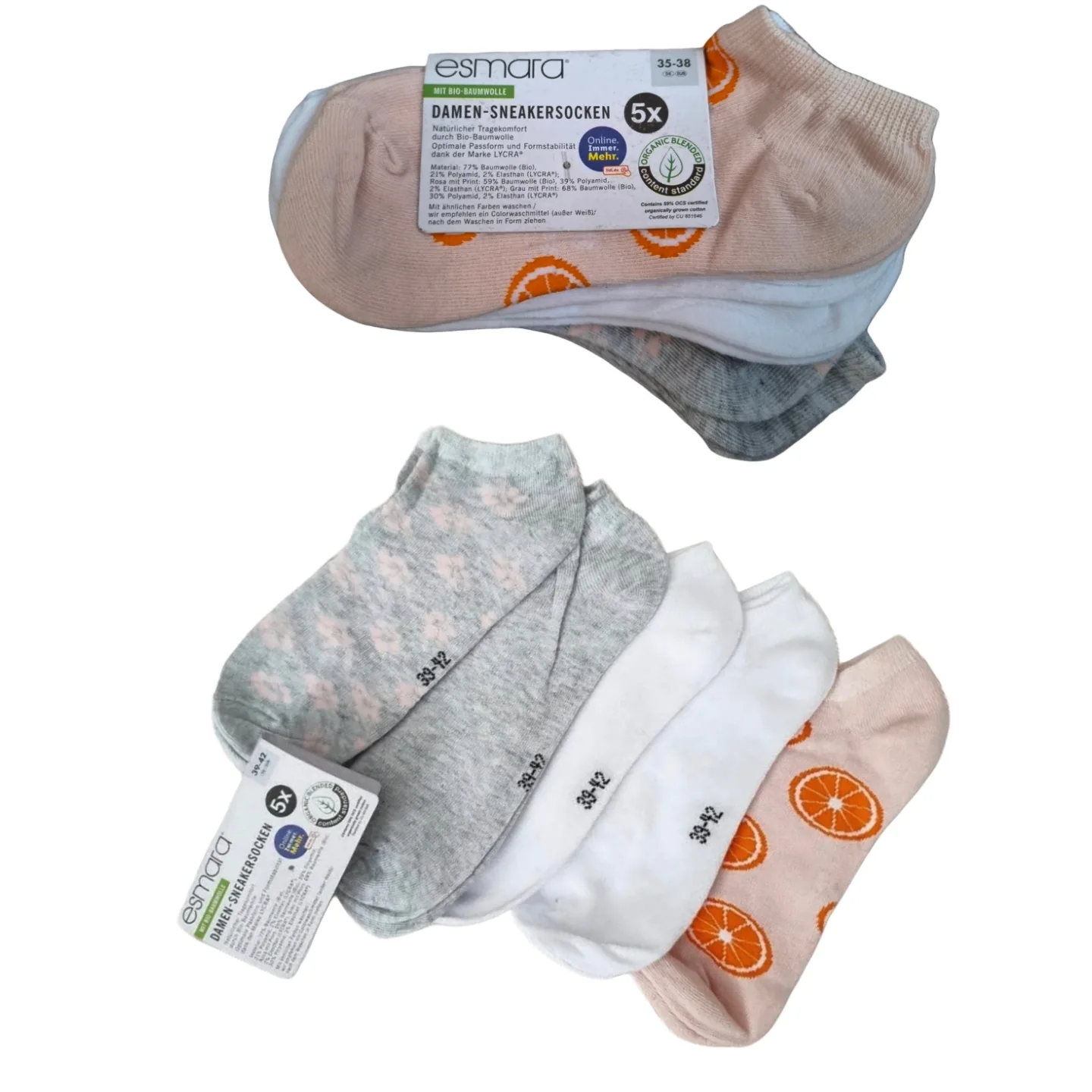 جوراب مچی زنانه اسمارا پک چند تایی در پک اصلی آلمانی ESMARA دارای نوار سیلیکون ژله ای در قسمت داخلی پاشنه دارای حالت کشسانی ظریف رویه جوراب جهت پوشیدن راحتتر دارای قابلیت تنفس پذیری