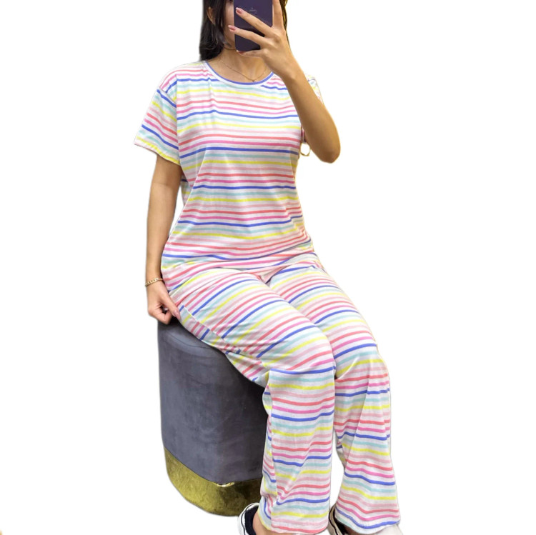 ست تیشرت شلوار نخی قواره دار برند h&m بنگلادشی سایز مدیوم