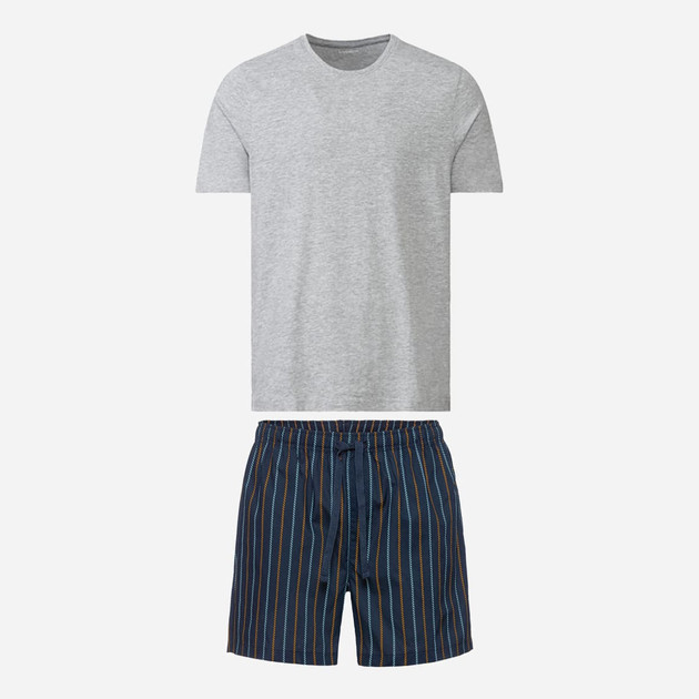تیشرت طوسی و شلوارک سورمه ای راه راه نارنجی و آبی