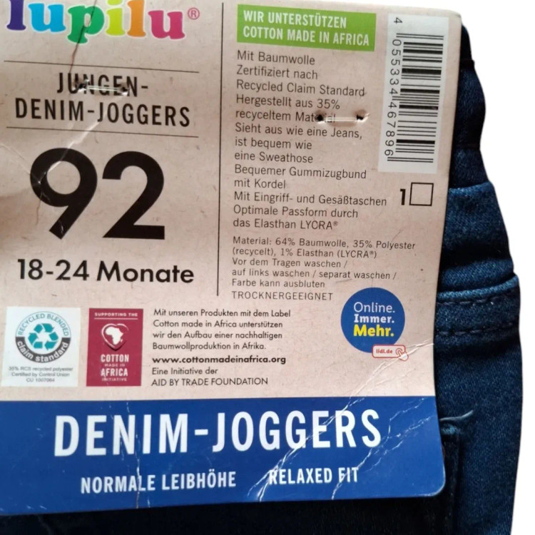 شلوار جین پسرانه برند لوپیلو محصول آلمان جنس پارچه ترکیب الیاف نخ و پلی استر مدل شلوار اسلش کمرکش و دمپا کش ضخامت متوسط دارای جیب های جانبی جلو و عقب دارای بند تنظیم سایز کمر دارای نشان استاندارد OEKOTEX قابلیت کشسانی ندارد متریال ۶۴٪ نخ ۳۵ ٪ پلی استر ۱٪ الاستان @siiin_style سایز ۹۲(۱۸ تا ۲۴ ماه) قد ۵۰ عرض کمر ۲۶ فاق پشت ۲۴ سایز ۱۱۶ (۵ تا ۶سال) قد۶۴ عرض کمر ۲۷ فاق پشت۲۶ تا ۵۰۰ #لوپیلو#بچگانه#پوشاک_اروپایی#لوپیلو_آلمان
