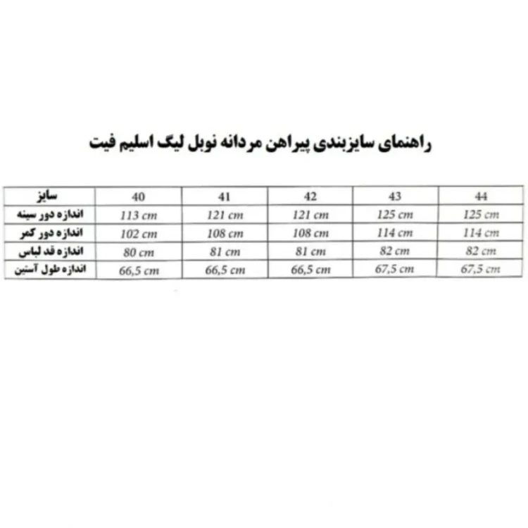 مشخصات اصلیسایز / 40 / 42 / 43 / 44مشخصات فرعیسایزهای موجود۴۰،۴۲،43،44برندنوبل لیگکشور تولید کنندهالمانمتریال100%نخاستایلاسلیم فیت(اندامی)