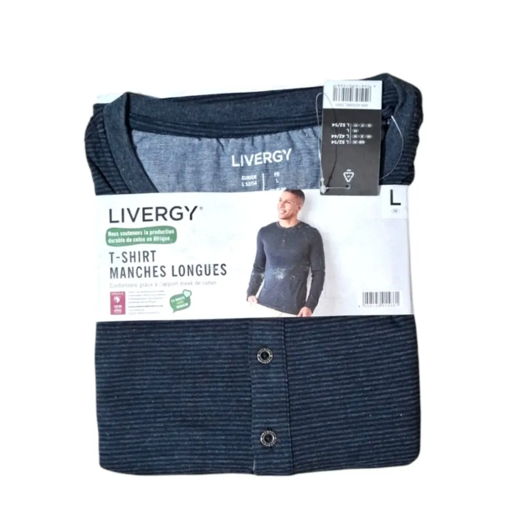 آستین بلند چهارفصل آلمانی برند لیورجی جنس پارچه نخی ساخته شده با الیاف کاملا طبیعی محصول شرکت لیدل(LIDL) آلمان خنک و راحت با ضخامت متوسط دکمه سه ردیفه قابلیت کشسانی دارد دارای نشان استاندارد Ecovero متریال۱۰۰٪نخ