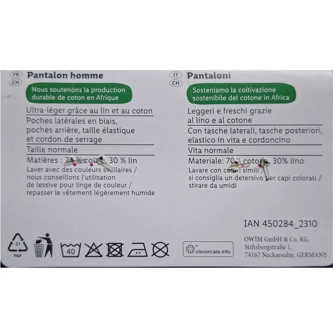 شلوار لینن مردانه برند لیورجی آلمان متریال ۷۰٪نخ،۳۰٪لینن دارای دو جیب جانبی و دو جیب پشتی دارای بند تنظیم کننده دارای استاندارد oekotex/ضد حساسیت سایزبندی مدیوم عرض کمر ۴۸ قد ۱۰۴ سایز لارج عرض کمر ۴۶ تا ۵۲ قد ۱۰۶ استوری/دایرکت/سایت #شلوار_لینن_مردانه