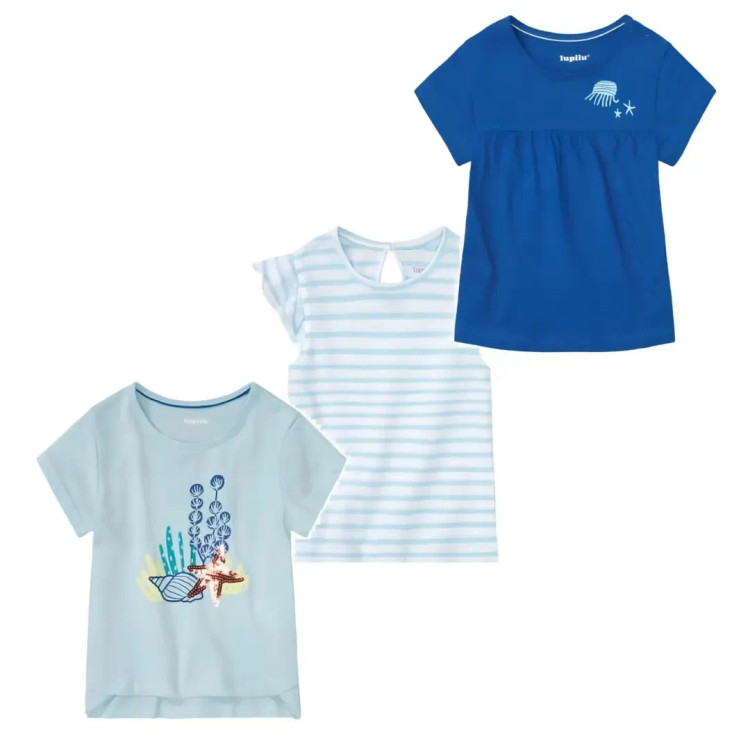 ***سایز ۲تا ۴سال*** اشتباه از طرف شرکت بوده که در پک محصول بجای تیشرت آبی کاربنی ،یک تیشرت راه راه آبی تکراری قرار داده ، درین پک ۲تیشرت راه راه و یک تیشرت آبی کمرنگ که طرح ستاره دریایی پولکی دارد ،قرار داده شده ****