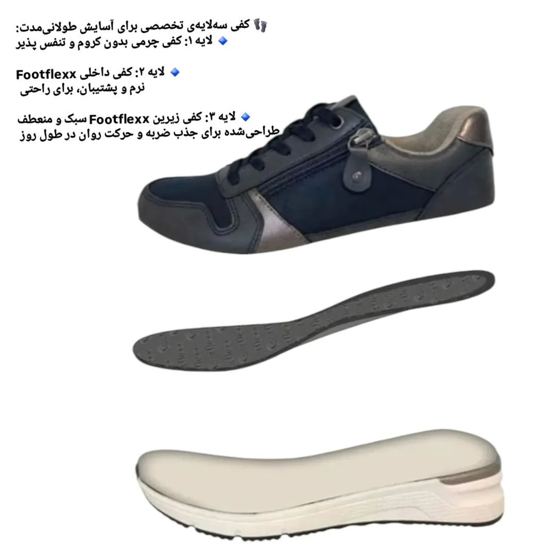 لایه ۳: کفی زیرین Footflexx سبک و منعطف طراحیشده برای جذب ضربه و حرکت روان در طول روز