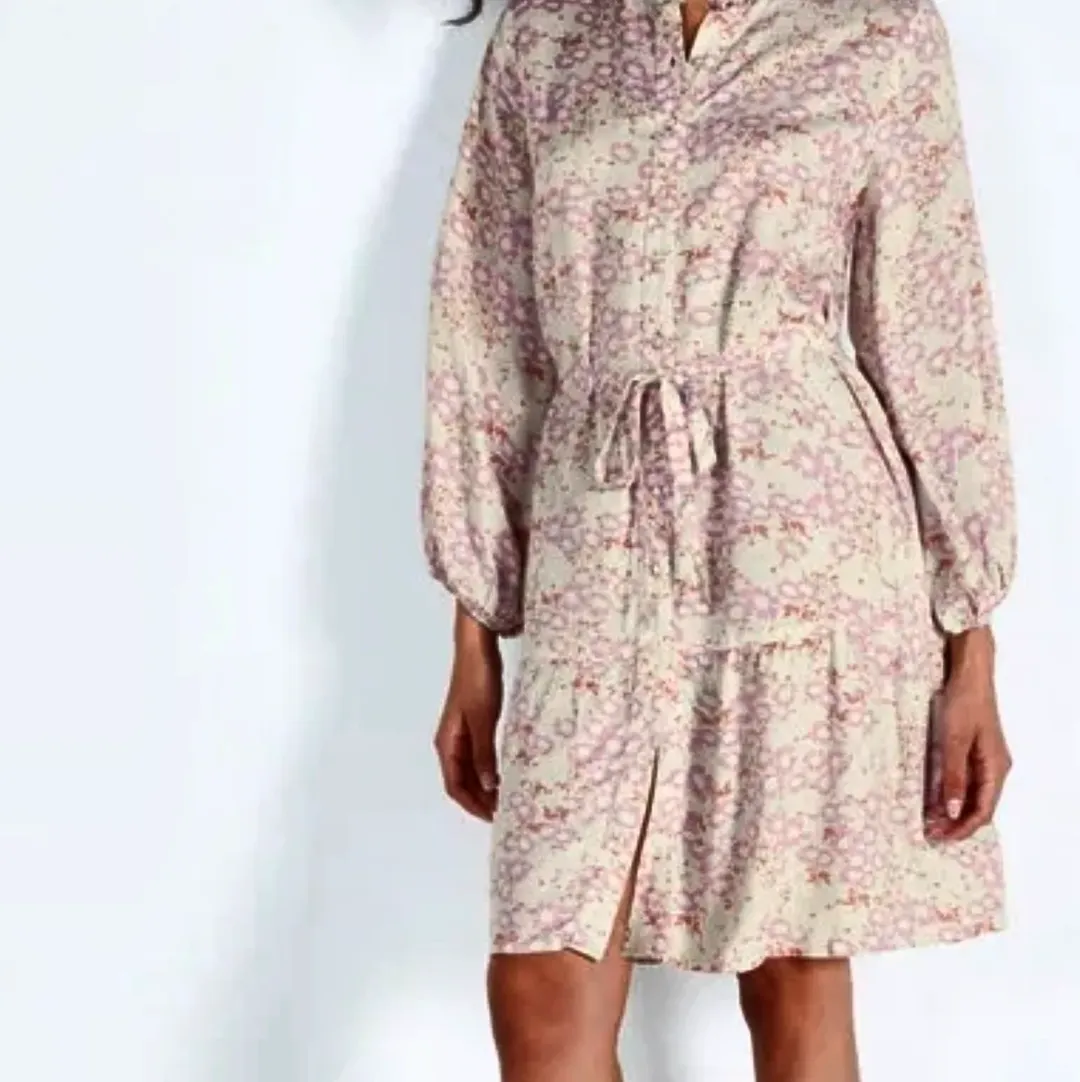 رنگ صورتی بند تنظیم کننده در قسمت کمر دارد و از قسمت یقه تا انتهای لباس دکمه کار شده