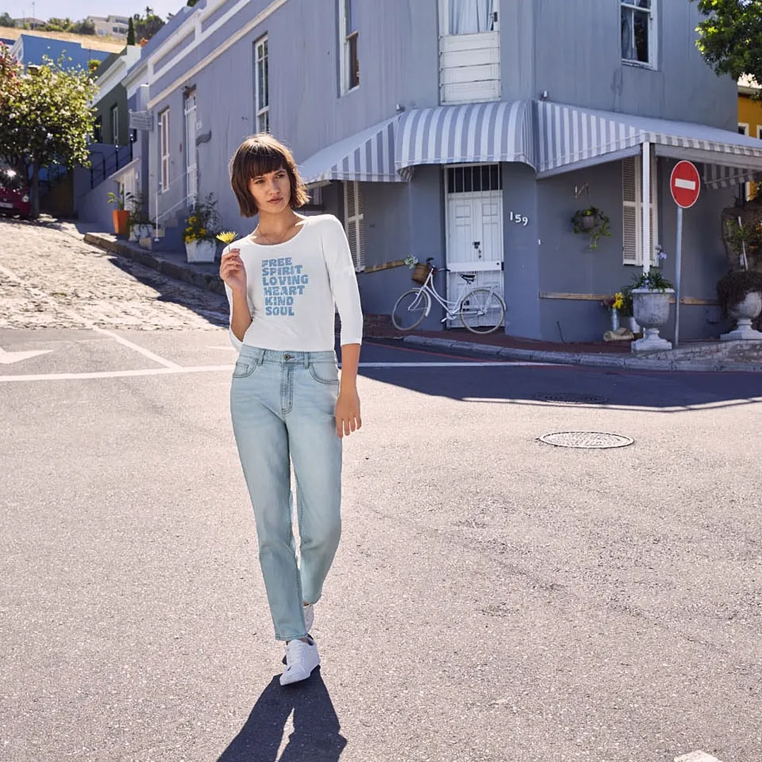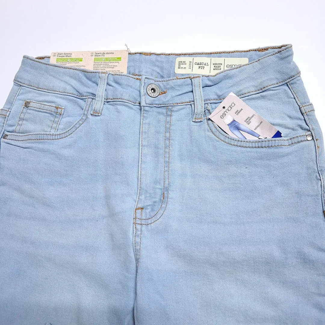 ورق بزن شلوار جین مام فیت برند اسمارا متریال ۹۹٪ نخ و ۱٪الاستین تولید از پنبه ارگانیک دارای استاندارد oekotex اروپا ضدحساسیت زیپ ykk ژاپن فاق بلند