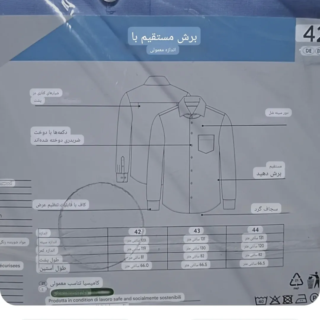 پیراهن مردانه لیورجی استایل رگولارفیت(برش معمولی و ازاد) متریال ۱۰۰٪نخ سایز ۴۳ سایز ۴۲ عرض سینه ۶۱.۵ و قد ۸۱ سایز ۴۳ عرض سینه ۶۵.۵ و قد ۸۲ اورجینال و در پک اصلی استوری/دایرکت/سایت www.siiinstyle.ir
